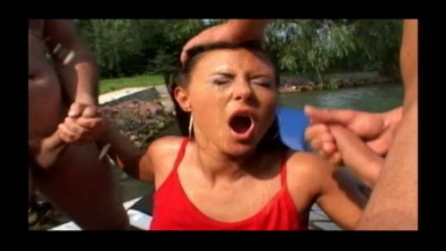 Вот это и называется неловкий момент в порно. Во время секса, парень не рассчитал и кончил и на девушку, и на второго парня. Это был действительно неловкий момент, особенно для второго парня, на которого попала струя спермы.