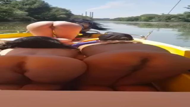 Сочные женские попки в лодке